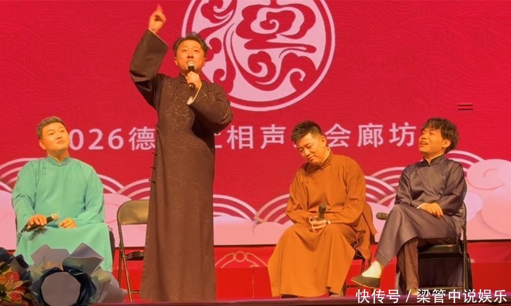 1日,德云社冯照洋、李云天、孙鹤宝、张鹤擎、孙九芳、郎昊辰这六个逗哏同台,用访谈的方式,给大家来了一段不一样的“群口”。既然是访谈,自然是有主持人的,杨鹤通便很好地担起了这个责任。这个节目演了三十分钟多点,杨鹤通提了两个问题,六位捧哏结合自己的实际,给出了最真诚的回答。