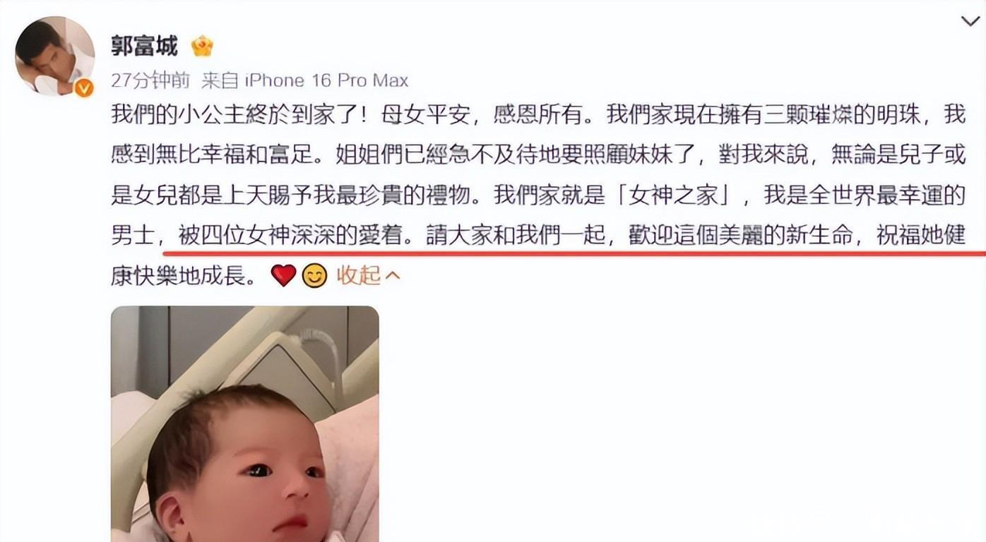 这事得倒着看才明白。郭富城去月宣布三胎女儿出生,嘴上说着“被四位女神爱着”乐得合不拢嘴,结果评论区立马变战场。有人酸“又是个女儿,郭家后继无人”,还有更难听的,说方媛“八年生仨,不就是拿孩子拴住天王?”连她早年网红身份都被翻出来炒冷饭,什么“名媛培训班”“专教钓富豪”,传得有鼻子有眼。 可你翻翻方媛这几年,除了晒娃,几乎没搞过啥大动静。不炒热度、不接代言,连街拍都是和郭富城一起带孩子。人家安安分分过日子,键盘侠倒急了,非说她“装贤惠洗白”。