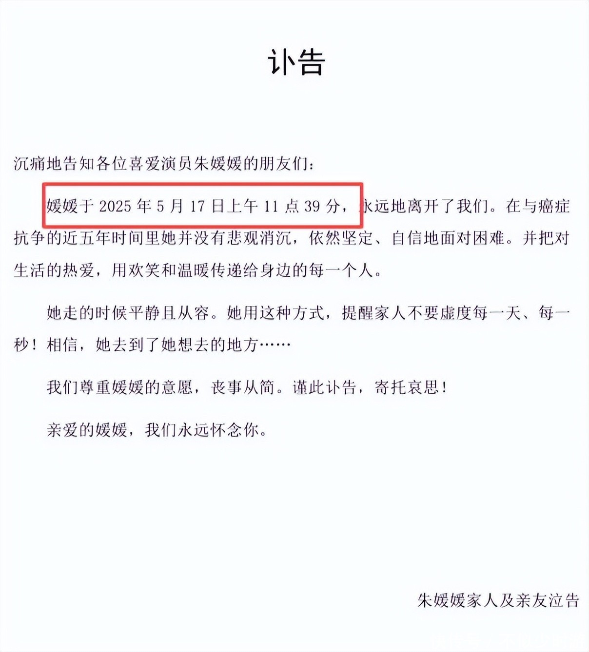 24. 大家都知道,朱媛媛的公开讣告虽日发布,但她实际离世时间日。